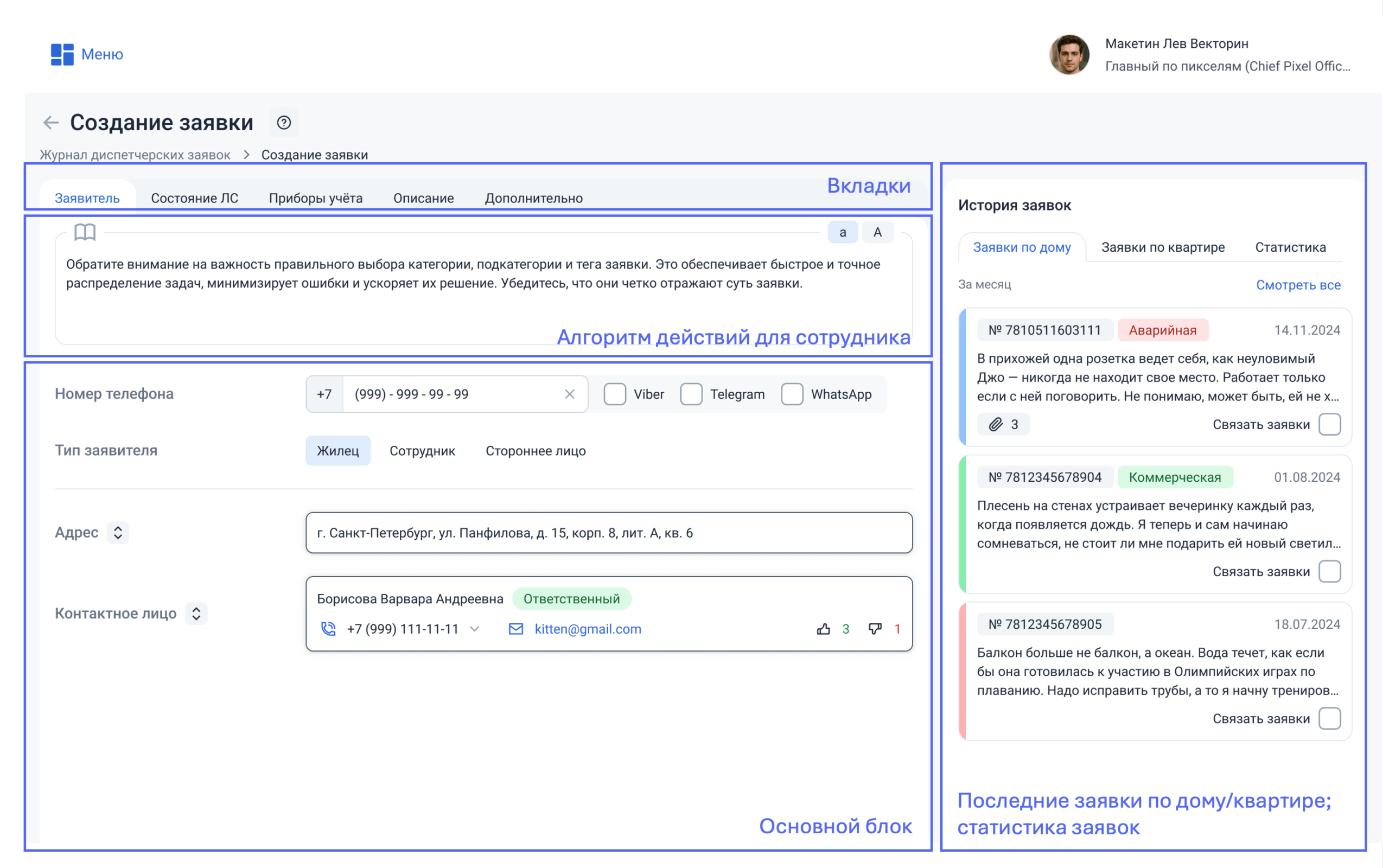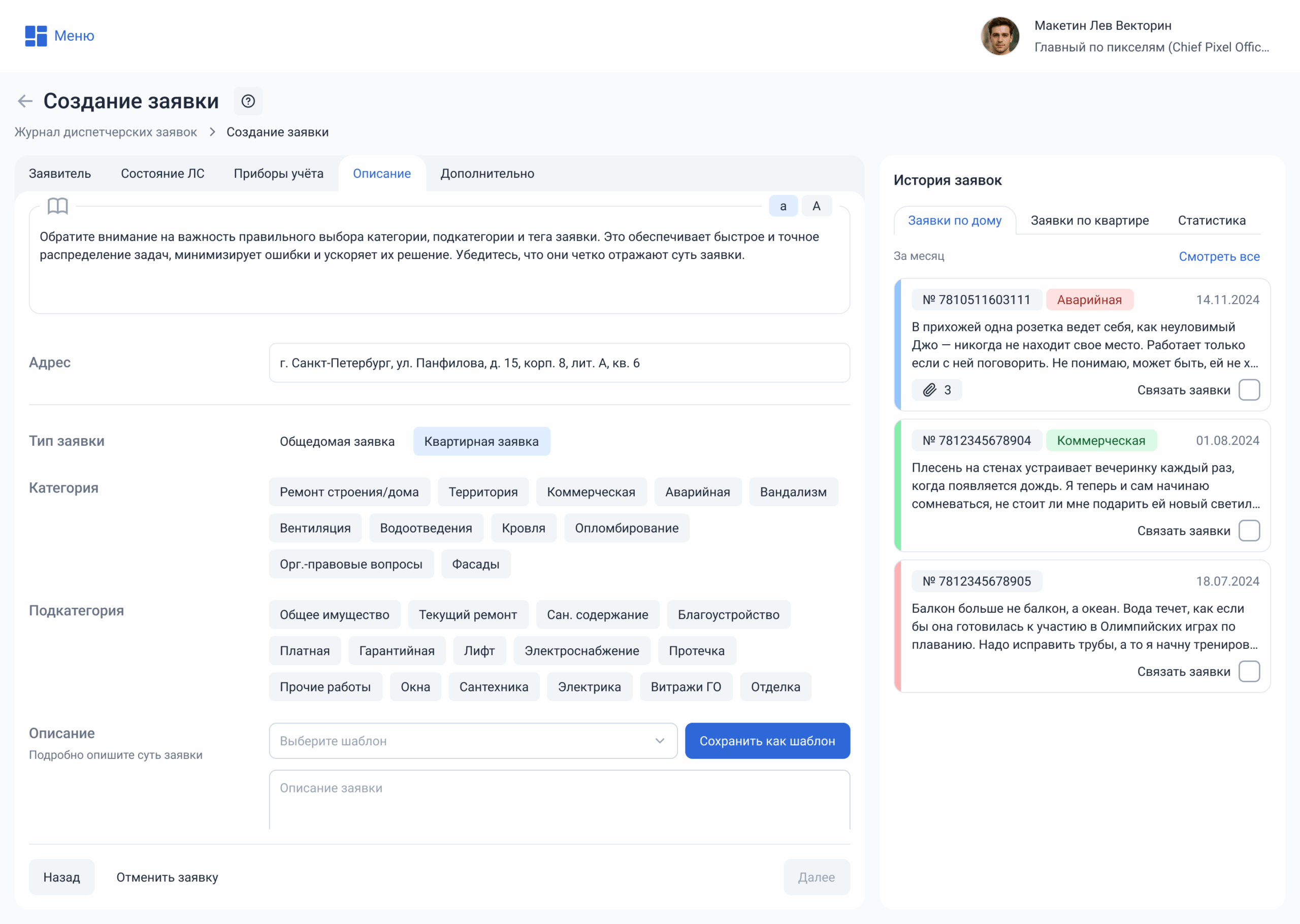 Вкладка доступна, только если тип заявителя — «Жилец».