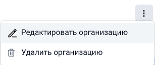 В этом блоке отображается название организации, описание и ссылка на сайт. Для редактирования данных, нажмите на кнопку «три точки» рядом с блоком и выберите пункт «Редактировать организацию».